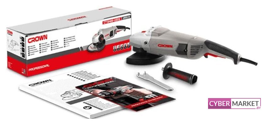 диаметр шлифкруга: 230 мм, 2600 Вт, 6500 об/мин холостого хода, 4.6 кг