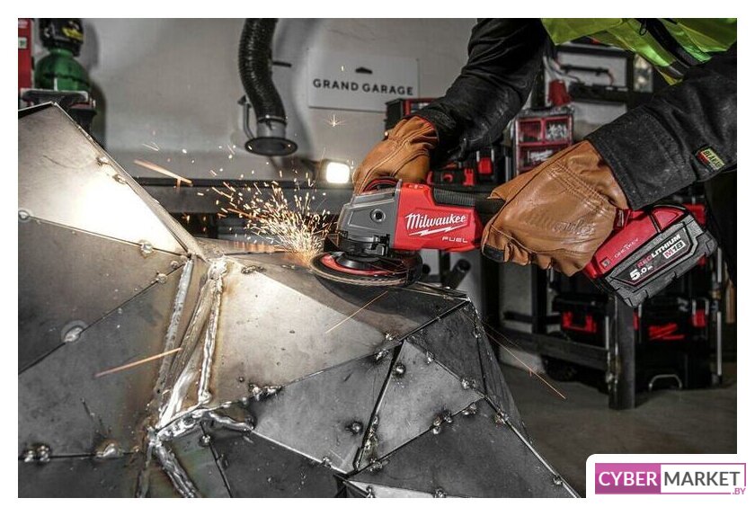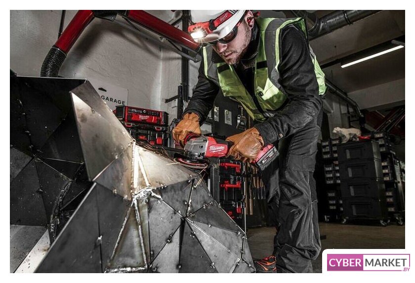 диаметр шлифкруга: 125 мм, 8500 об/мин холостого хода, без АКБ, 2.3 кг