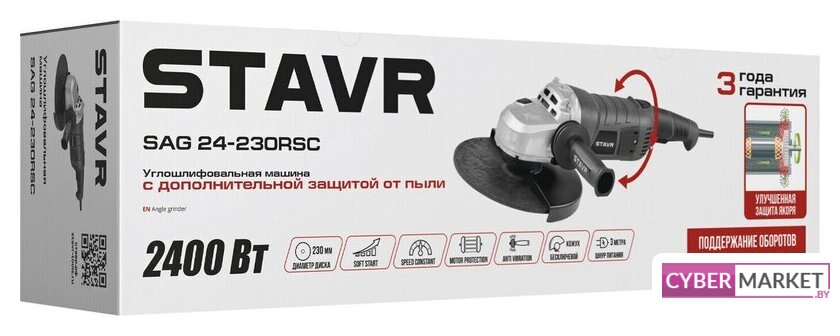 диаметр шлифкруга: 230 мм, 2400 Вт, 6500 об/мин холостого хода, 7.25 кг