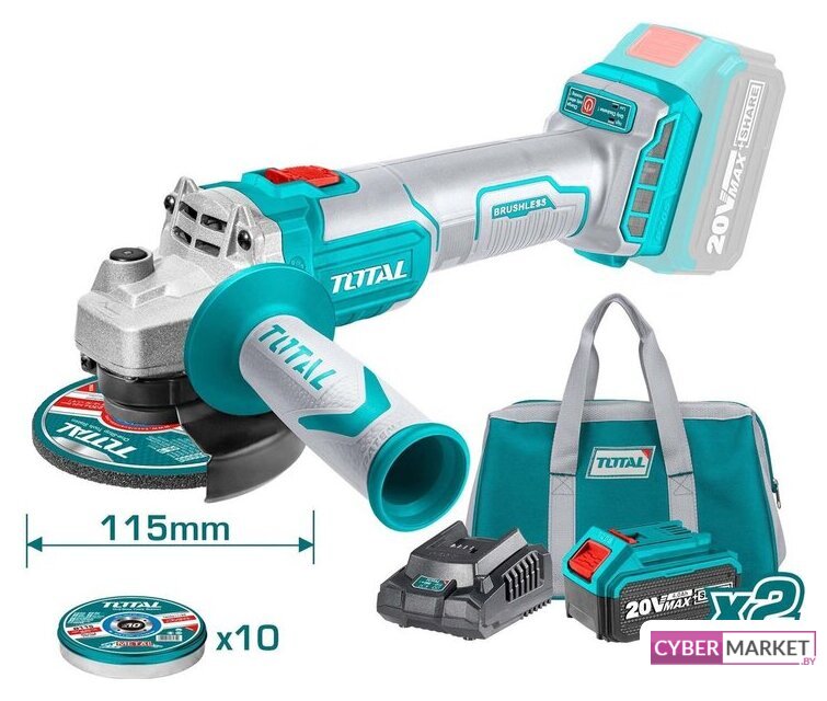 | Комплект поставки | - Угловая шлифмашина - 1 шт.- Боковая рукоятка - 1 шт.- Фланцевый ключ - 1 шт.- Аккумулятор 4,0 Ач - 2 шт.- Зарядное устройство - 1 шт.- Отрезной диск - 10 шт.- Инструкция- Сумка |