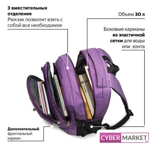 городской/школьный, для девочек, для мальчиков, унисекс, 30 л, 2 отделения