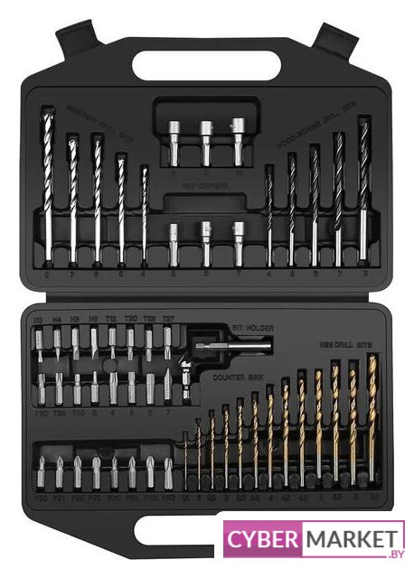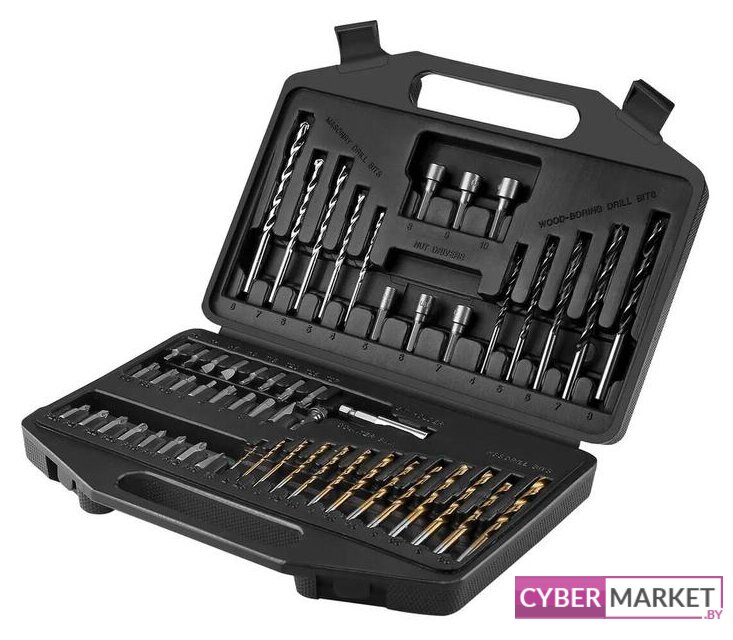 | Комплектация | 24 шт - биты 25L: SL3,4,5,6,7,PH0,1,2,3, PZ0,1,2,3,H3,4,5,6,T15,20,25,27,30,35,406 шт - бита с торцевой головкой: 5,6,7,8,9,10мм13 шт - сверло витое: 1.5,2,2.5,3,3.2,3.5,4,4.5, 4.8,5,5.5,6,6.5мм5 шт - сверло по дереву: 4,5,6,7,8мм5 шт - сверло по кирпичной кладке: 4,5,6,7,8мм1 шт - магнитный держатель для бит 60мм1 шт - сверло зенкер 6.35мм |