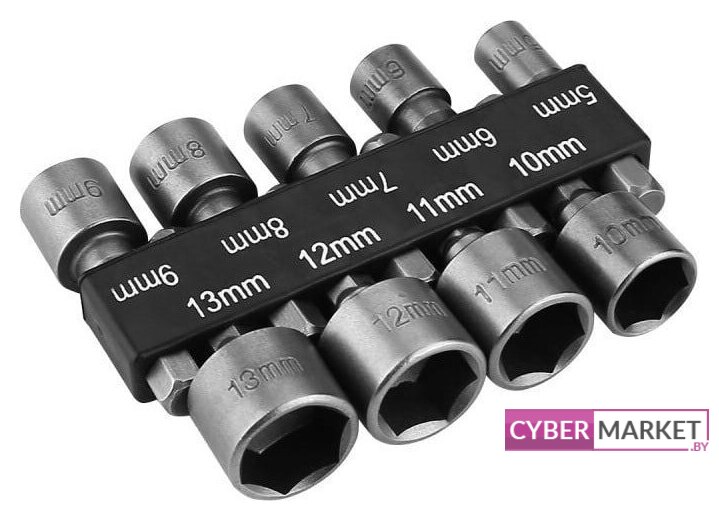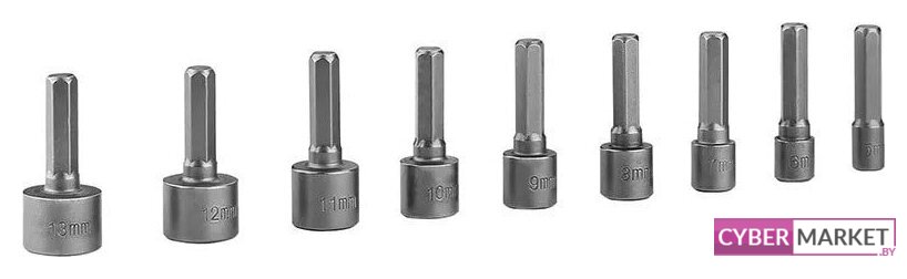 | Комплектация | Набор головок включает в себя 9 шт: 5, 6, 7, 8, 9, 10, 11, 12, 13 мм |