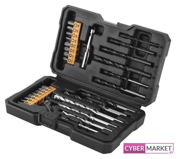 | Комплектация | 16 шт биты 25L: SL3,4,5,6,PH0,1,2,3,PZ0,1,2,3,H3,4,5,61 шт зенкер 6.35мм1 шт магнитный держатель для бит 60мм4 шт спиральные свёрла 3,4,5,6мм4 шт свёрла для кирпича 4,5,6,8мм4 шт свёрла по дереву 4,5,6,8мм |