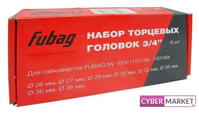 | Комплектация | Торцевые головки 26 / 27 / 29 / 30 / 35 / 36 / 38 ммКоробка |