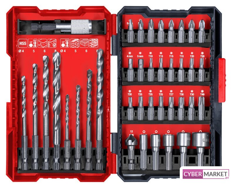 | Размер биты | H4, H5, PH1, PH2, PZ1, PZ2, PZ3, T10, T15, T20, T25, T27, T30, T40 |
