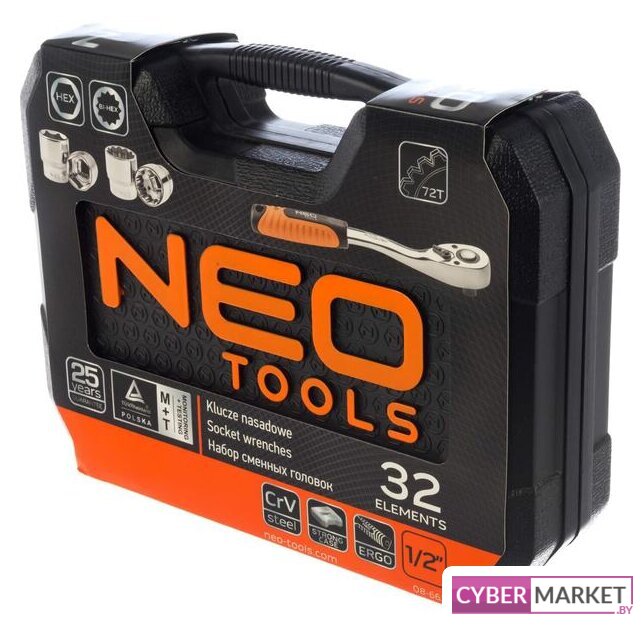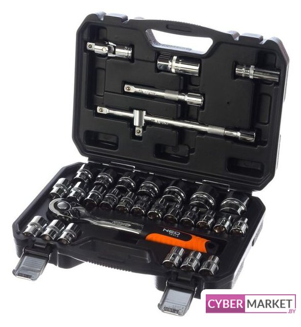 | Комплектация | Шестигранные головки 1/2,19 шт.: 8, 9, 10, 11, 12, 13, 14, 15, 16, 17, 18, 19, 20, 21, 22, 24, 27, 30, 32 мм;Двенадцатигранные головки 1/2 6 шт.: 10, 12, 14, 15, 17, 19 мм;Трещотка 1/2, 72 зубцов;Удлинители 1/2 2 шт.: 5 и 10;Универсальный удлинитель 1/2;Вороток сквозной Т-образный 1/2;Свечные головки 1/2 2 шт.: 16 мм и 21 мм;Кейс. |