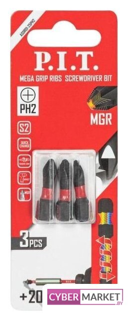 3 шт, головка бита, хвостовик шестигранный, размер папа (M): 1/4" Hex, рабочий размер биты: PH3, рабочий размер 25 мм