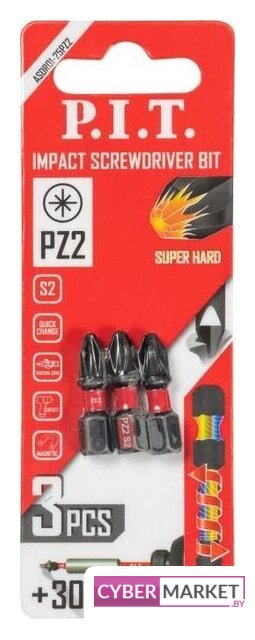 3 шт, головка бита, хвостовик шестигранный, размер папа (M): 1/4" Hex, рабочий размер биты: PZ2, рабочий размер 25 мм