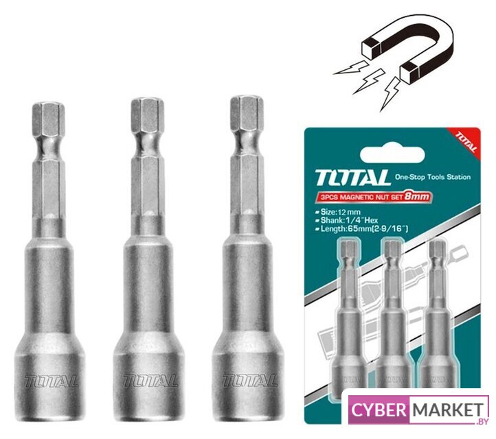 3 шт, размер папа (M): 1/4" Hex, рабочий размер биты: H6
