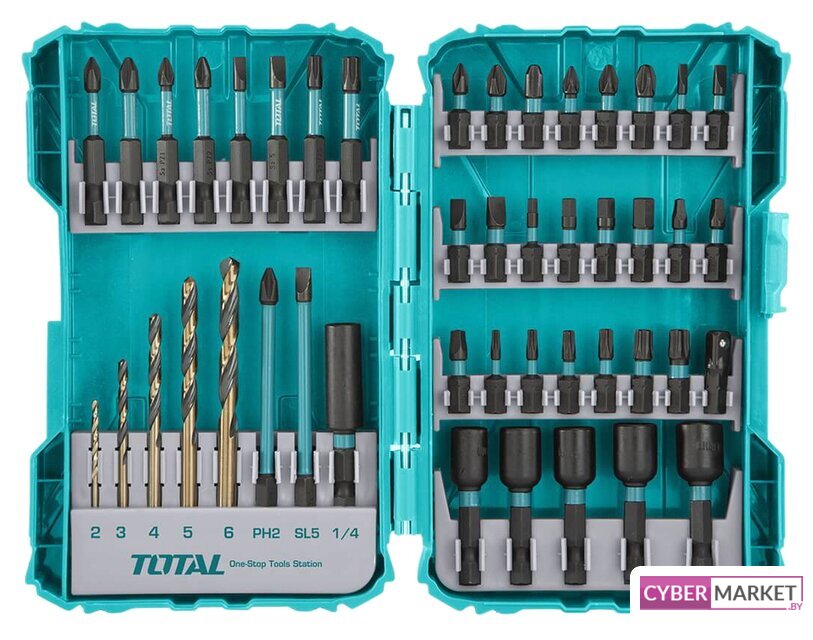 | Комплектация | - Биты ударные 25 мм - 23 шт.- Биты ударные 50 мм - 8 шт.- Биты ударные 89 мм: PH2 - 1 шт, SL5 - 1 шт.- Адаптер - 1 шт.- Держатель для бит Hex 1/4 - 1 шт.- Сверла по металлу - 5 шт: мм, 3мм, 4мм, 5мм, 6мм- Головки магнитные 48 мм - 5 шт: 6мм, 7мм, 8мм, 9мм, 10мм- Пластиковый кейс для хранения - 1 шт. |