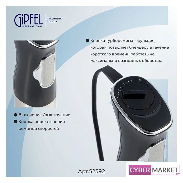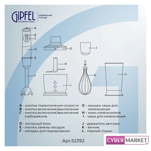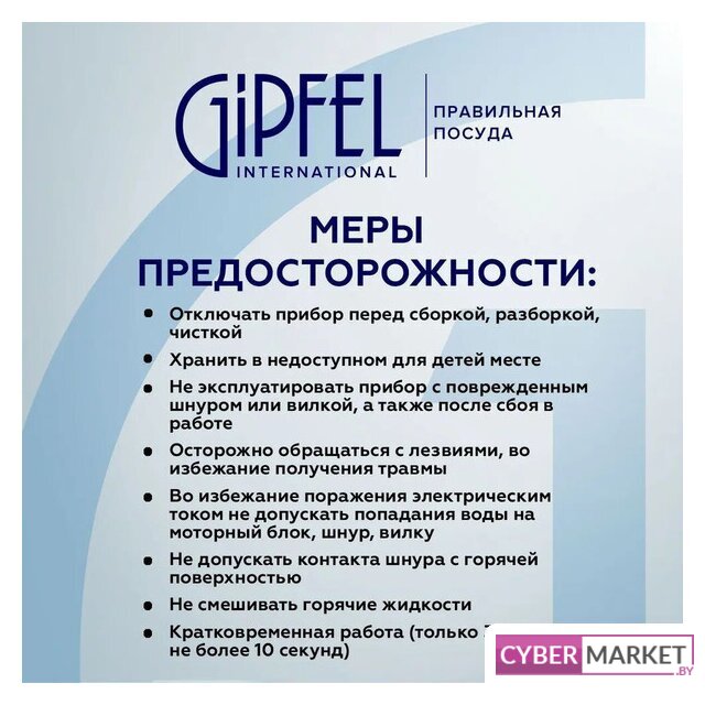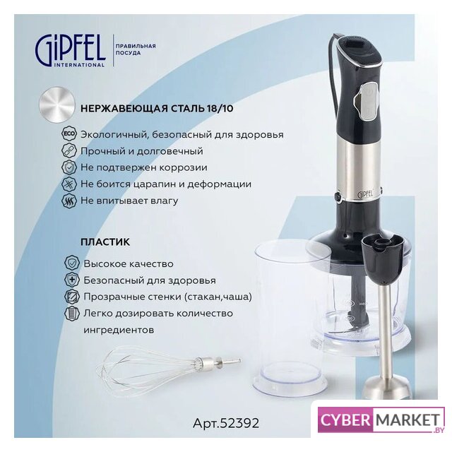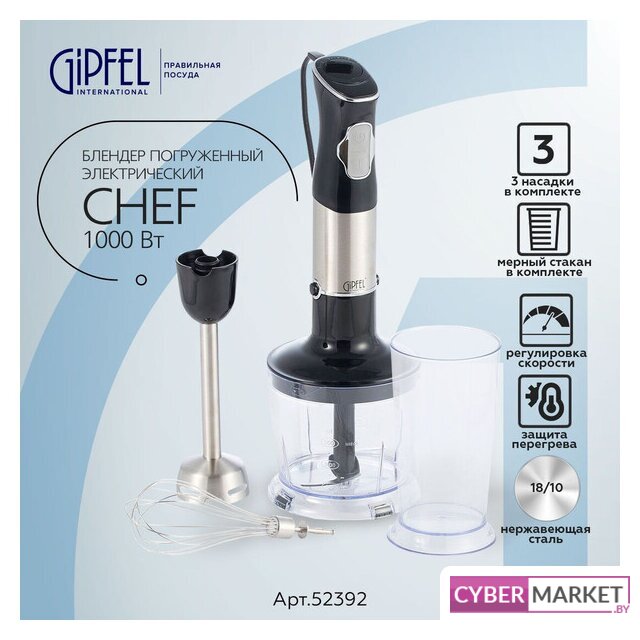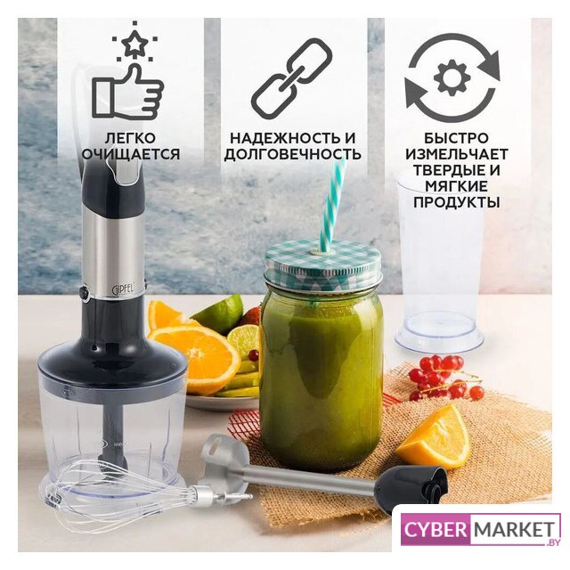 | Комплектация | - блендер;- насадка-блендер;- насадка-венчик;- мерный стакан;- чаша измельчителя с крышкой;- руководство по эксплуатации;- гарантийный талон. |