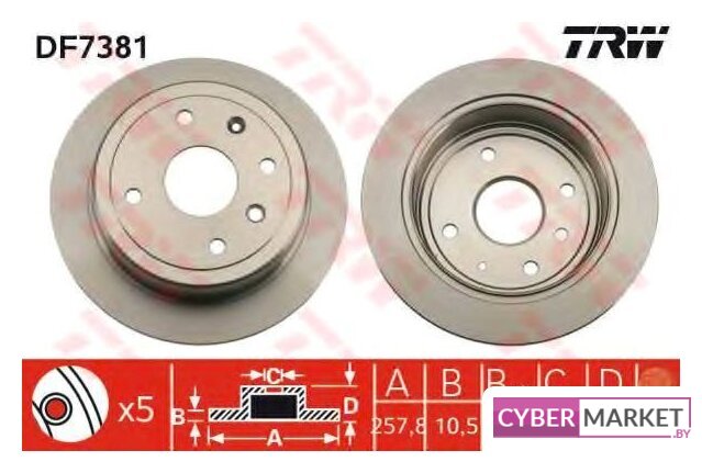 невентилируемый, установка: задний мост, диаметр 262 мм