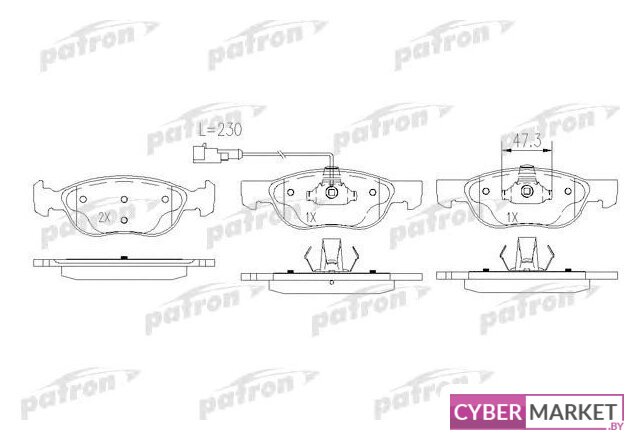 установка: передний мост, со звуковым предупреждением износа