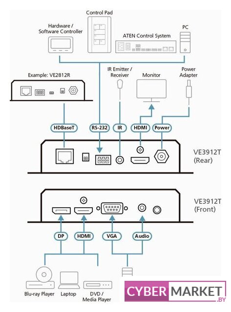 удлинитель по витой паре HDMI/HDBaseT, черный