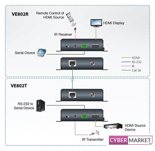 адаптер/удлинитель HDMI/3.5 мм jack/DC-jack/RJ45 (3,5 - IR), черный