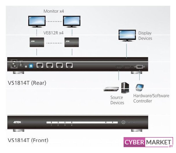 | Разъемы | HDMI, COM (RS-232), RJ45 (RJ-45: 4 выхода) |