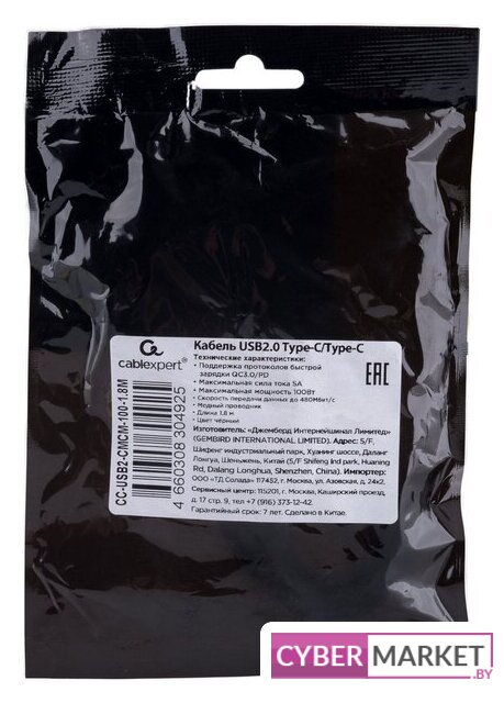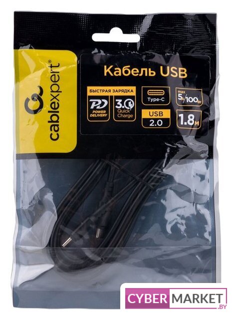 кабель USB 2.0 Type-C, черный, длина 1.5 м