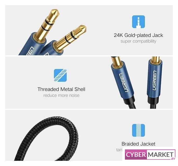 адаптер 3.5 мм jack, черный, длина 0.2 м