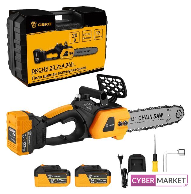 | Комплект поставки | Пила цепная (основной корпус) - 1 шт.Шина - 1 шт.Пильная цепь - 1 шт.Ручка тормоза (защитный щиток) - 1 шт.Зарядное устройство - 1 шт.Аккумулятор (4 А/ч, 20 В) - 2 шт.Отвертка - 1 шт.Шестигранный торцевой ключ - 1 шт.Руководство по эксплуатацииКейс |