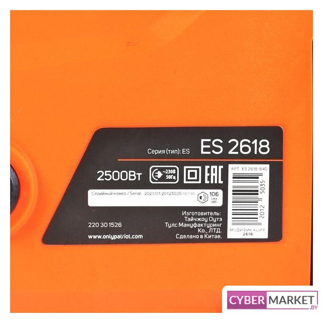 электрическая, бытовая, 2.4 кВт, шаг цепи: 3/8 дюйма, длина шины: 46 см, быстрое натяжение цепи, 5.3 кг