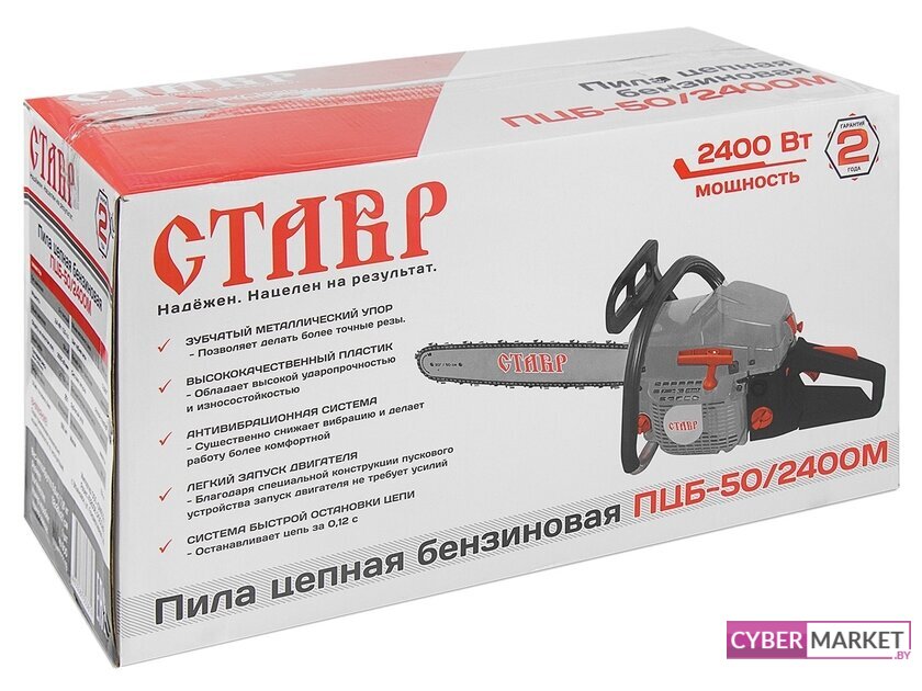 | Комплект поставки | шина, цепь, защитный чехол шины, отвертка, свечной ключ, шестигранный ключ (2 шт.) напильник, емкость для приготовления смеси (бензин+масло), чехол для инструмента |