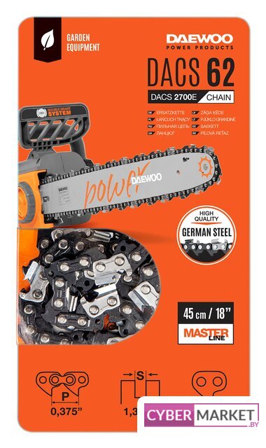 металл, шаг цепи 3/8", длина шины 35 см (14"), совместимость: универсальная