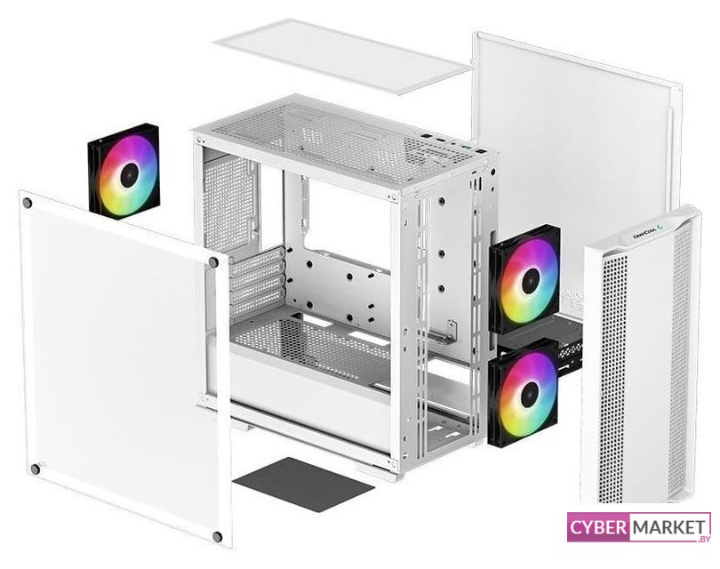 Mini Tower, БП отсутствует, для плат micro-ATX/mini-ITX, в комплекте 4 вентилятора, окно: закаленное стекло, видеокарта до 300 мм, охлаждение ЦП до 160 мм, пылевые фильтры, 2xUSB 2.0, 1xUSB-A 3.2 5Гбит/с, цвет черный