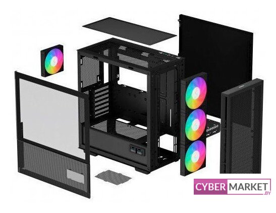 Mid Tower, БП отсутствует, для плат ATX/micro-ATX/mini-ITX, в комплекте 4 вентилятора, окно: закаленное стекло, видеокарта до 380 мм, охлаждение ЦП до 175 мм, пылевые фильтры, 2xUSB-A 3.2 5Гбит/с, 1xUSB-C 3.2 10Гбит/с, цвет черный
