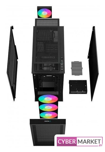 аквариум/Mid Tower, БП отсутствует, для плат ATX/micro-ATX/eATX/mini-ITX, в комплекте 3 вентилятора, окно: закаленное стекло, видеокарта до 480 мм, охлаждение ЦП до 132 мм, пылевые фильтры, 4xUSB-A 3.2 5Гбит/с, 1xUSB-C 3.2 10Гбит/с, цвет черный