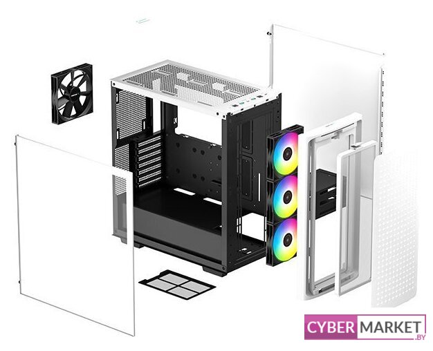 Mid Tower, БП отсутствует, для плат ATX/micro-ATX/mini-ITX, в комплекте 4 вентилятора, окно: закаленное стекло, видеокарта до 375 мм, охлаждение ЦП до 180 мм, пылевые фильтры, 2xUSB-A 3.2 5Гбит/с, 1xUSB-C 3.2 5Гбит/с, цвет белый