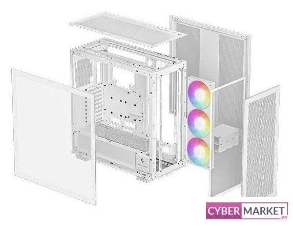 аквариум/Mid Tower, БП отсутствует, для плат ATX/micro-ATX/eATX/mini-ITX, в комплекте 3 вентилятора, окно: закаленное стекло, видеокарта до 480 мм, охлаждение ЦП до 132 мм, пылевые фильтры, 4xUSB-A 3.2 5Гбит/с, 1xUSB-C 3.2 10Гбит/с, цвет белый