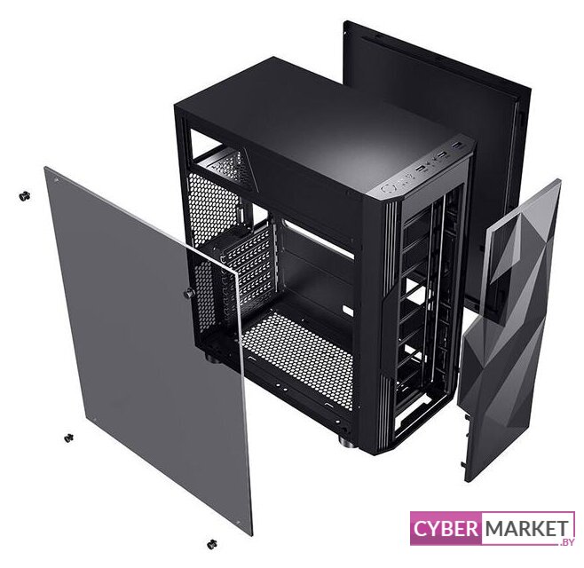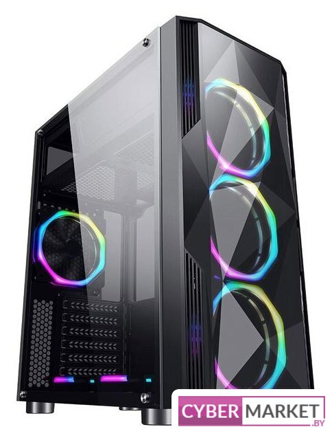 Mid Tower, блок питания отсутствует, для плат ATX/micro-ATX/mini-ITX, 4 вентилятора, 2xUSB 3.0, окно: закаленное стекло, цвет корпуса черный