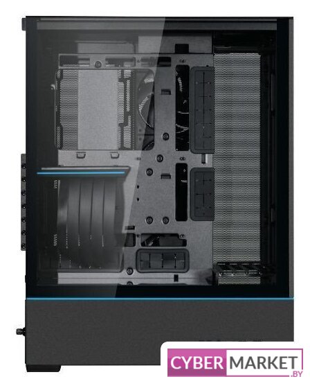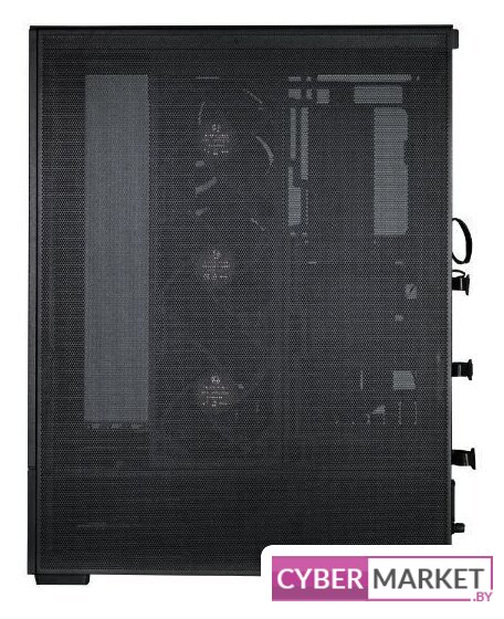 Mid Tower, блок питания отсутствует, для плат ATX/micro-ATX/mini-ITX, 6 вентиляторов, 2xUSB 2.0, 1xUSB 3.0, окно: закаленное стекло, цвет корпуса черный