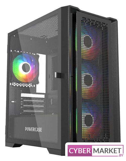 Mid Tower, блок питания отсутствует, для плат ATX/micro-ATX/mini-ITX, 6 вентиляторов, 2xUSB 2.0, 1xUSB 3.0, окно: закаленное стекло, цвет корпуса черный