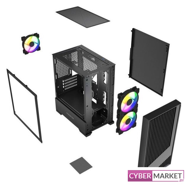 Mini Tower, БП отсутствует, для плат micro-ATX/mini-ITX, с 3 вентиляторами в комплекте, окно: закаленное стекло, видеокарта до 300 мм, охлаждение ЦП до 165 мм, пылевые фильтры, 2xUSB 2.0, 1xUSB-A 3.2 5Гбит/с, цвет черный