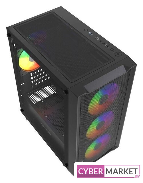 аквариум/Mini Tower, БП отсутствует, для плат micro-ATX/mini-ITX, в комплекте 1 вентилятор, окно: закаленное стекло, видеокарта до 330 мм, охлаждение ЦП до 165 мм, 1xUSB 2.0, 1xUSB-A 3.2 5Гбит/с, 1xUSB-C 3.2 5Гбит/с, цвет черный