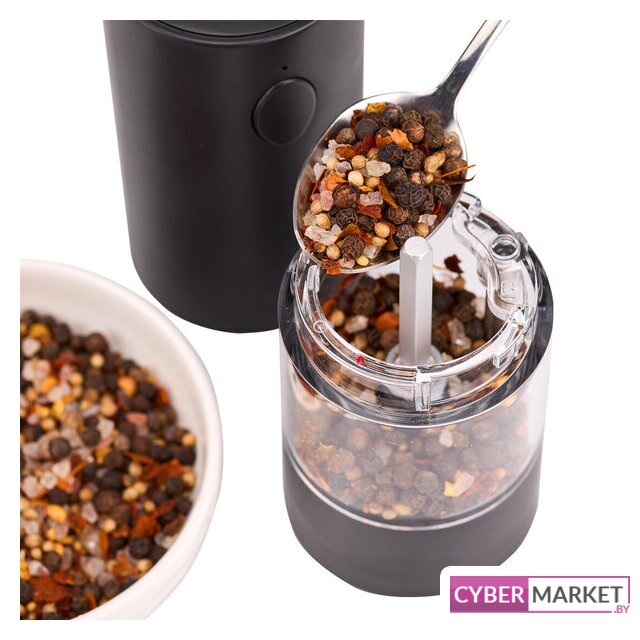 электроперечница, питание от аккумулятора, чаша 0.07 л, материал чаши: пластик, материал корпуса: металл/пластик, нержавеющая сталь/черный