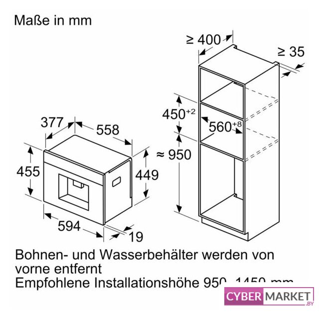 кофемашина, встраиваемая, 1350 Вт, корпус металл, используемый кофе: молотый/зерновой, цвет черный