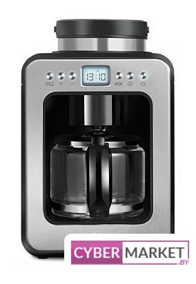 капельная кофеварка, 120 Вт, корпус пластик, используемый кофе: молотый/зерновой, цвет нержавеющая сталь/черный