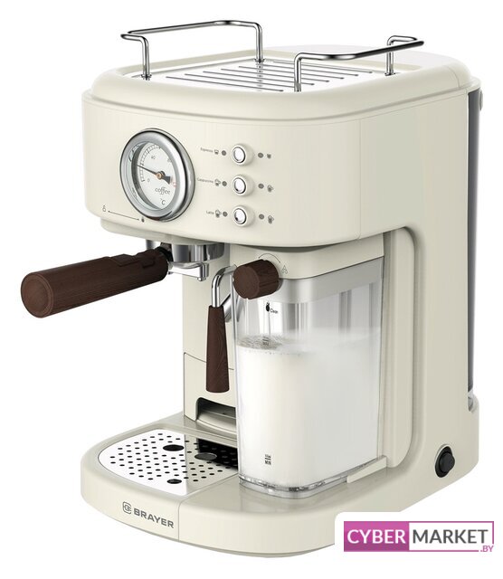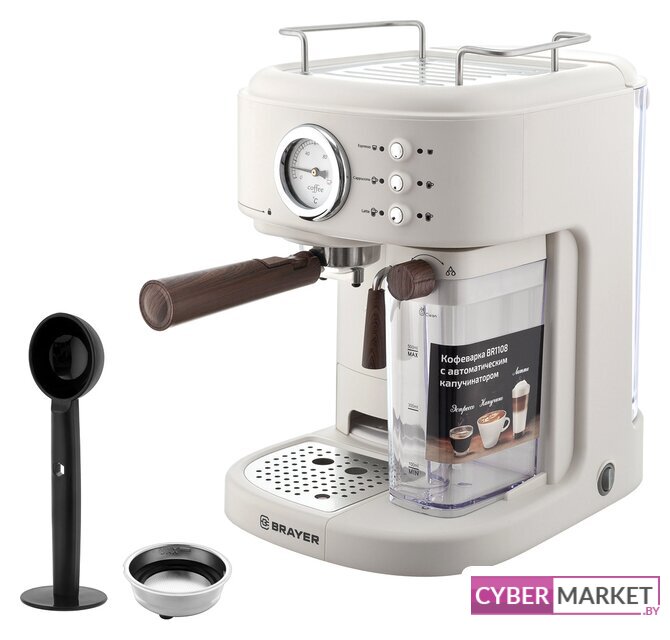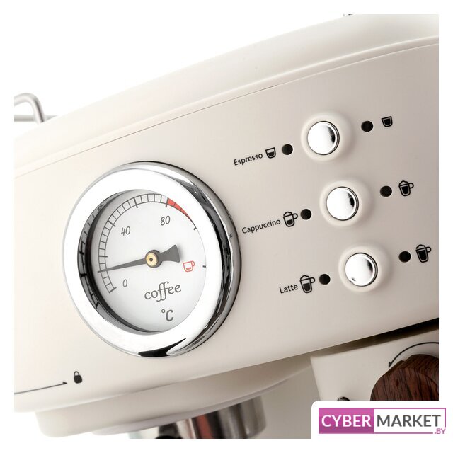 рожковая помповая кофеварка, 1250 Вт, корпус пластик, капучинатор автоматический, используемый кофе: молотый, цвет бежевый