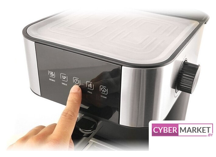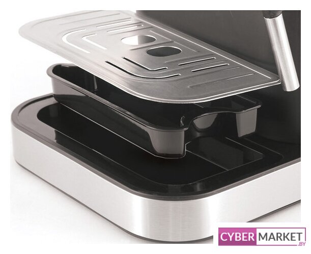 рожковая помповая кофеварка, корпус пластик, капучинатор ручной, используемый кофе: молотый, цвет серебристый/черный