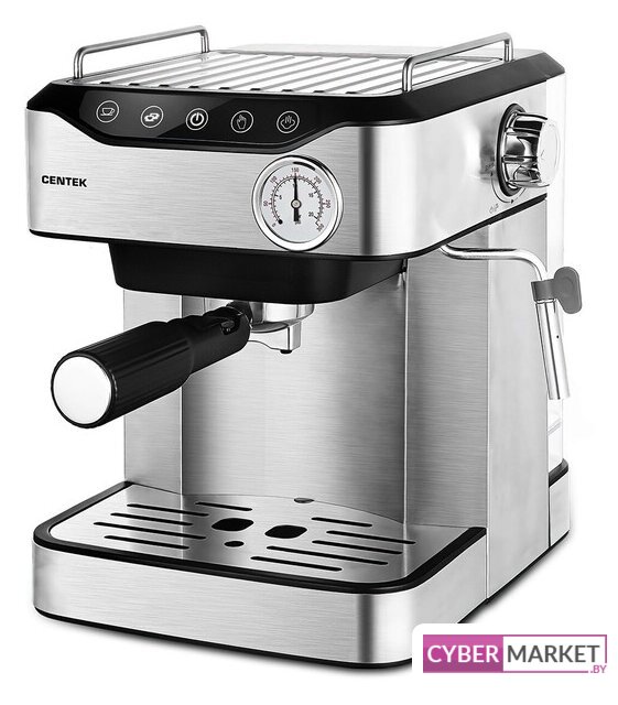 рожковая бойлерная кофеварка, 1200 Вт, корпус металл/пластик, капучинатор ручной, используемый кофе: молотый, цвет нержавеющая сталь/черный
