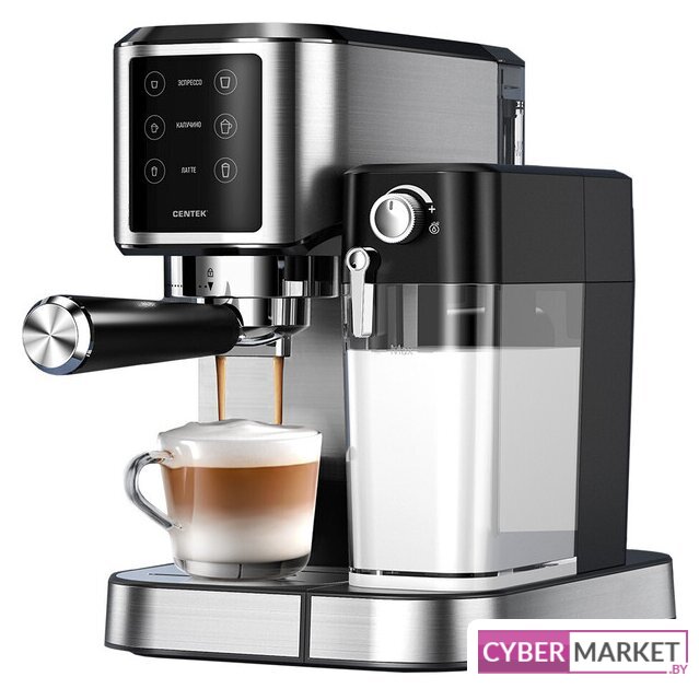 рожковая помповая кофеварка, 1470 Вт, корпус металл/пластик, капучинатор автоматический, используемый кофе: молотый, цвет нержавеющая сталь/черный