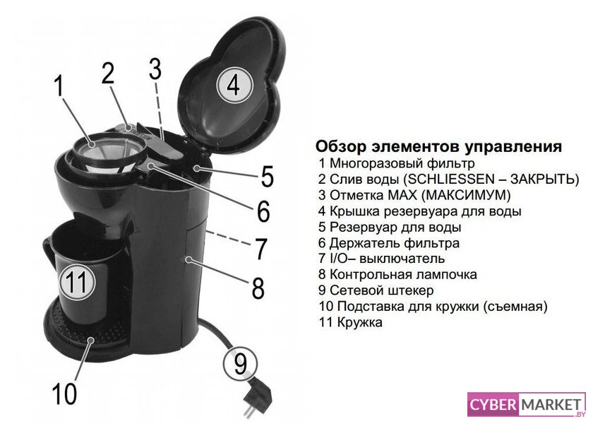 750 Вт, корпус пластик, используемый кофе: молотый, цвет черный