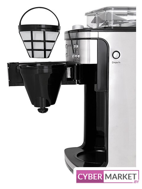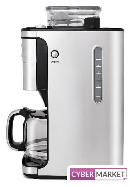 капельная кофеварка, 1050 Вт, корпус металл/пластик, используемый кофе: молотый/зерновой, цвет нержавеющая сталь/черный
