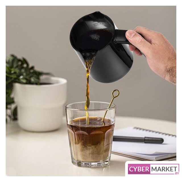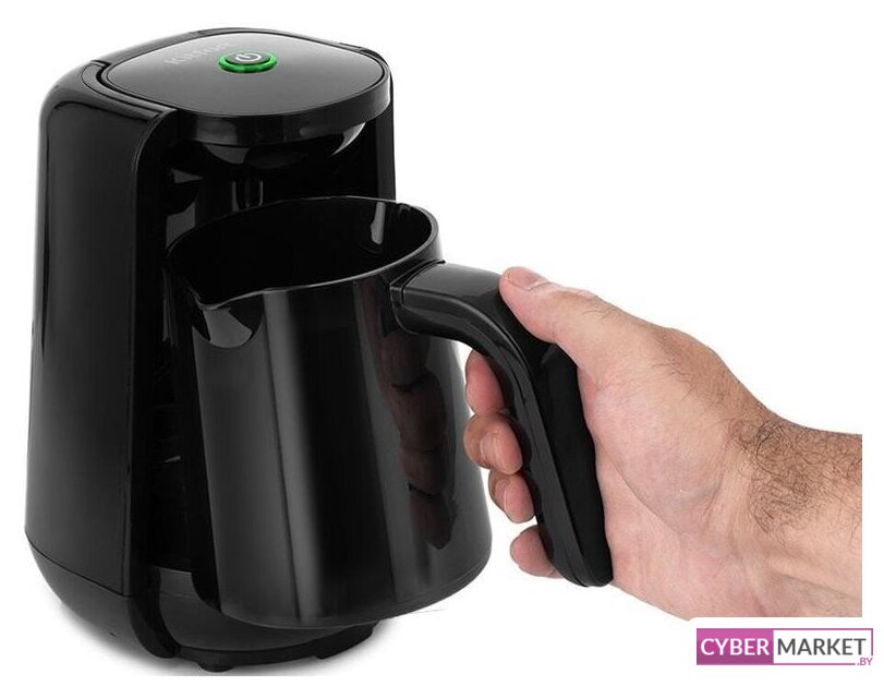 электрическая турка, 1000 Вт, корпус металл, используемый кофе: молотый, цвет нержавеющая сталь/черный