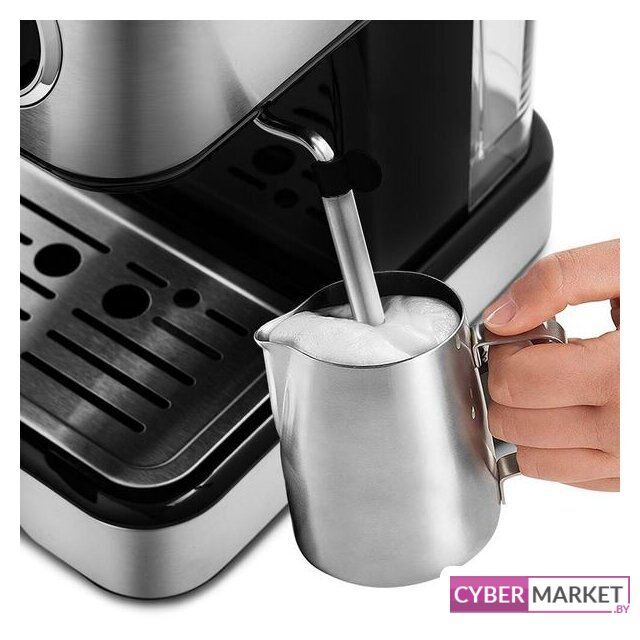 рожковая помповая кофеварка, 850 Вт, корпус пластик, капучинатор ручной, используемый кофе: молотый, цвет нержавеющая сталь/черный