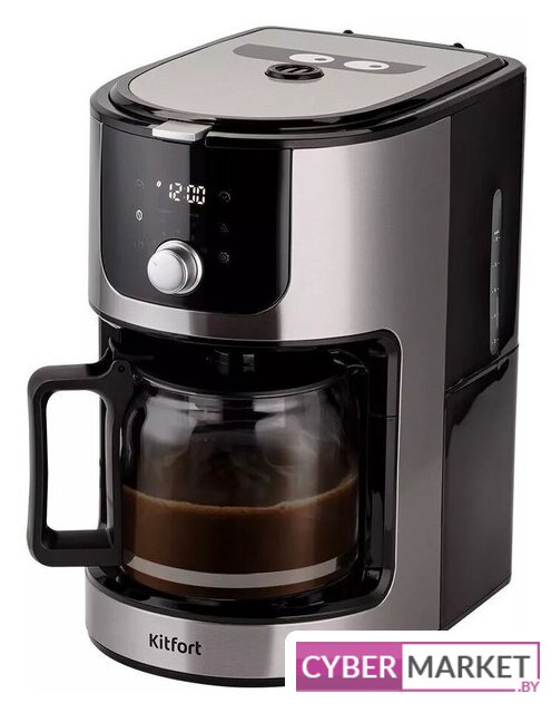 капельная кофеварка, 600 Вт, корпус пластик, используемый кофе: молотый/зерновой, цвет нержавеющая сталь/черный