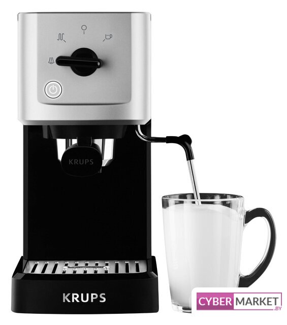 1200 Вт, корпус металл/пластик, капучинатор ручной, используемый кофе: молотый, цвет нержавеющая сталь/черный